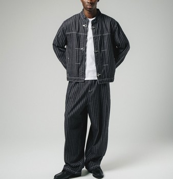 Custom Men High Quality Button up Strip Denim Jacket Set 14oz Heavyweight Two Piece Jeans Suit for Men